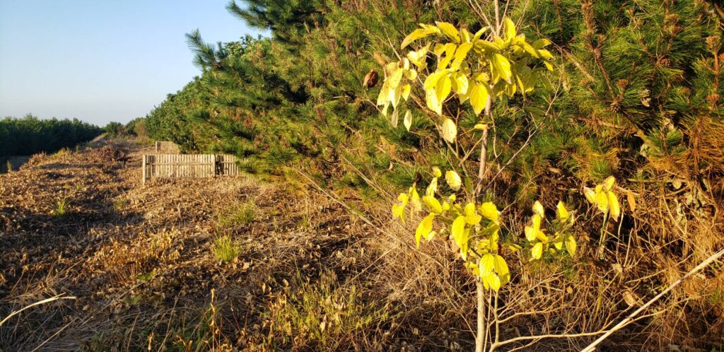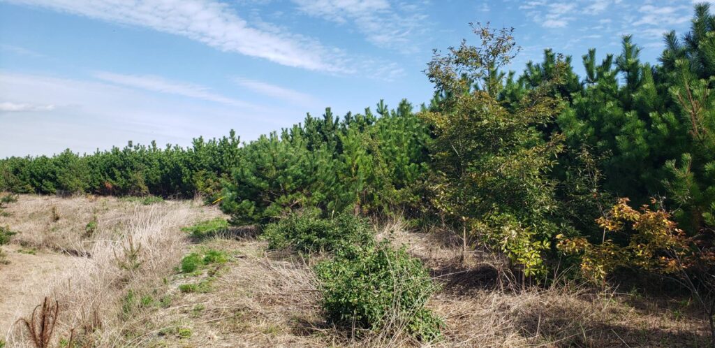 2ヶ所目の広葉樹植林地は、広葉樹の外側に一列クロマツが植えられてしまった場所で、かなり周囲が繁った場所でしたが、1ヶ所目よりも生存率は体感かなり高かったです。