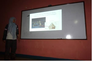 インドネシア語ビギナーの私に代わり、通訳をしてくれたスタッフのアナさんインドネシアのスカブミ研修センターでは夜の時間を使って日本語を教えていました。