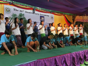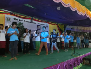研修センターで行われた20周年記念式典は手づくりの舞台、