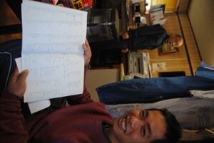 「この調子でやれば日本語試験は大丈夫だ。ノート持ってきてみな!」(社長)