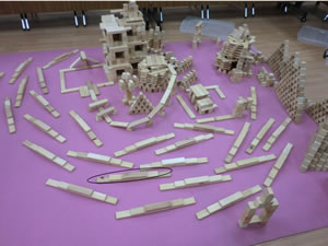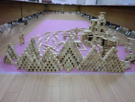 私の弟(小2)、山田哲入(仮名)はオイスカに来るといつもつみ木で遊んでいます。