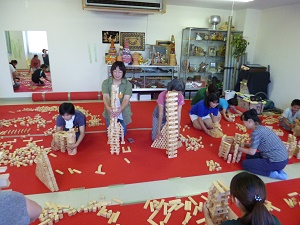 説明の後には、実際につみ木広場を体験!みなさん夢中に作品を作っていられました。