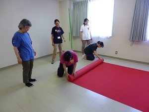 座学では、高松大学の先生より、子どもの遊びと発達についてのワークショップを行っていただき、その後オイスカより、オイスカの説明と「森のつみ木広場」の説明及び実施の流れ、ポイントの説明を行いました。