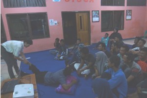 早速、開始前に人口呼吸の映像を流していたら爆笑!口づけをしているシーンで興奮してしまったようです(苦笑)。イスラムは男女関係の決まりが厳しいため、かえってこのようなシーンが笑いを誘発してしまうのかもしれません。