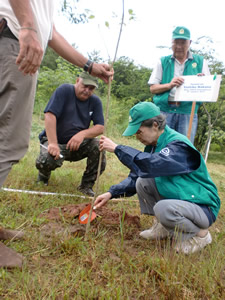 写真は、ブラジル総局がブラジル・ニッポン移住者協会と協力して取り組んでいる「日伯・絆の森」で中野総裁が記念植樹をしているところです。