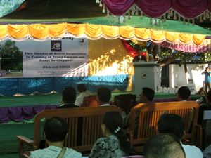 研修センターで行われた20周年記念式典は手づくりの舞台、