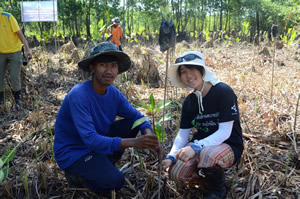 植林をした後、マングローブリサーチセンターの見学、これまでに植林されたマングローブをボートで見に行くというスケジュールでした。