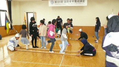 もっと体を動かしたくなった子どもたち。続いて竹を使ったフィリピンのダンスに挑戦です。