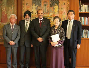 総裁はオイ スカとイン ドとの長い協力関係の歴史について説明し、さらに、11月に南インドで開催 されたアジア太平洋青年フォーラムについて報告。 大使は熱心に耳を傾けてくださり、特にオイスカの理念は天文を基調としており、関係団体が静岡県に天文台を所有している点に非常に関心を持たれ、年明けの1月1日に早速、天文台を訪問されたそうです。