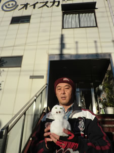 出勤すると男性職員が傘をさしながら雪かきをしていました。事務所ゲートから玄関まではスロープになっていて、ここに雪があるとちょっと怖いのですが、M部長のおかげで滑ることなく事務所に到着。