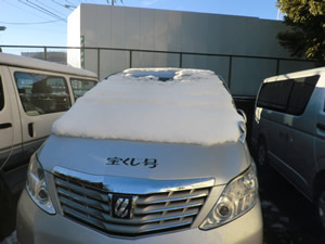 オイスカの車“宝くじ号”も雪をかぶっていました