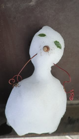 翌朝出勤するとちょっととけてやせてしまっていました。 CIMG9248鼻の穴?が一つなくなっていたので、真ん中に付け替えました。たれ目になって、ちょっとかわいい顔になった気がしませんか?? でも、お昼前にはヒゲと目(ひとつ)を残して姿を消していました。 CIMG9249