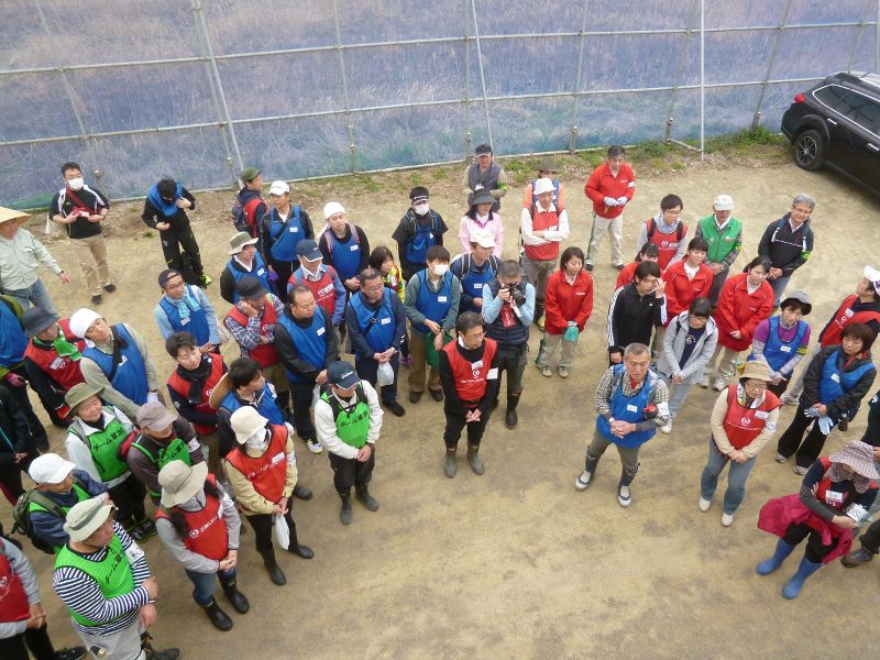 この日、割り箸を「名取の広大な大地に刺す」というミッションを持ったボランティアの皆様が一堂に会しました。