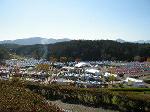 当日は、300以上のブースが出展、絶好の秋晴れにも恵まれ、会場となった笠間芸術の森公園周辺では駐車場入り待ちが二時間以上となる長蛇の車列ができていました。