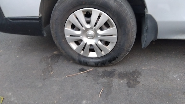 確かに道路に駐車している車を見て回ると、どの車もタイヤの下が黒く濡れていました。