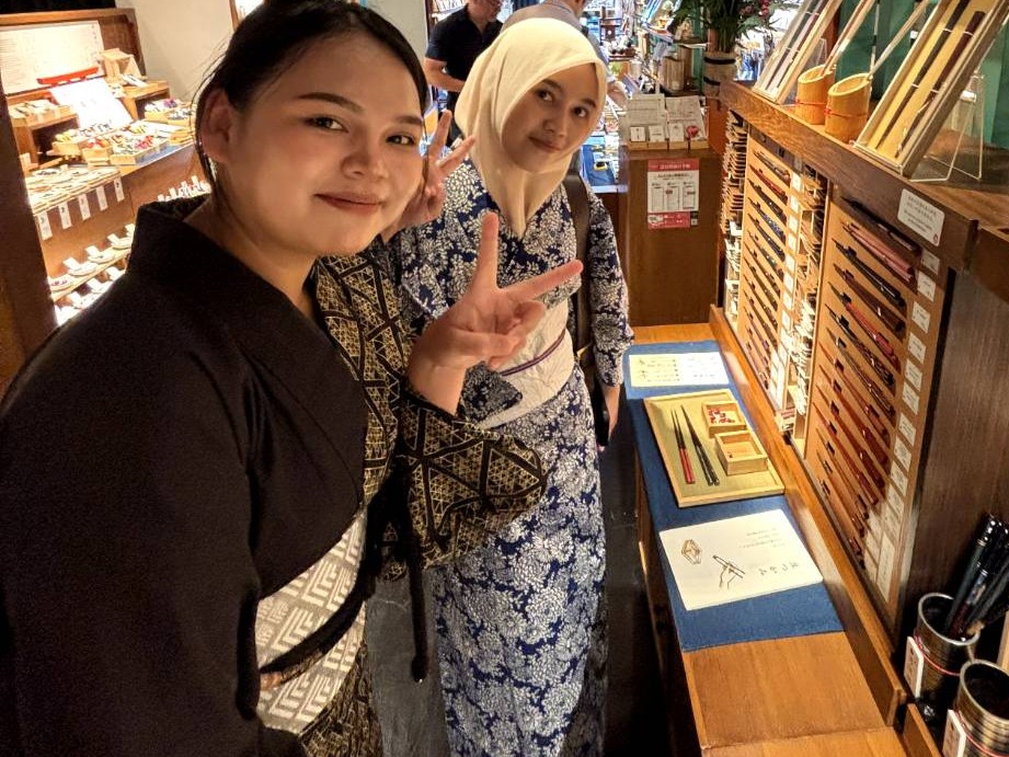 インドネシアから介護の技能実習生として来日している、イルマさんとヘスティさんの巡回指導のため、実習先のけんちの苑(医療法人社団 竹恵会)を訪問しました。2人に最近の話を聞くと、「施設のスタッフの方と一緒に埼玉県川越市に外出し、とても楽しかった」と答えてくれました。さらに特に印象に残ったことを尋ねると、「職場の方に着付けてもらって、初めて浴衣を着ました」と嬉しそうに話してくれました。浴衣姿で、お店の商品を見たり、アイスクリームやかき氷を食べたりしたそうです。ヘスティさんは、その時の様子を写真に撮って家族に送ったそうで、彼女のお母さんから「その服はなに?」と興味津々な返信が来たそうです。