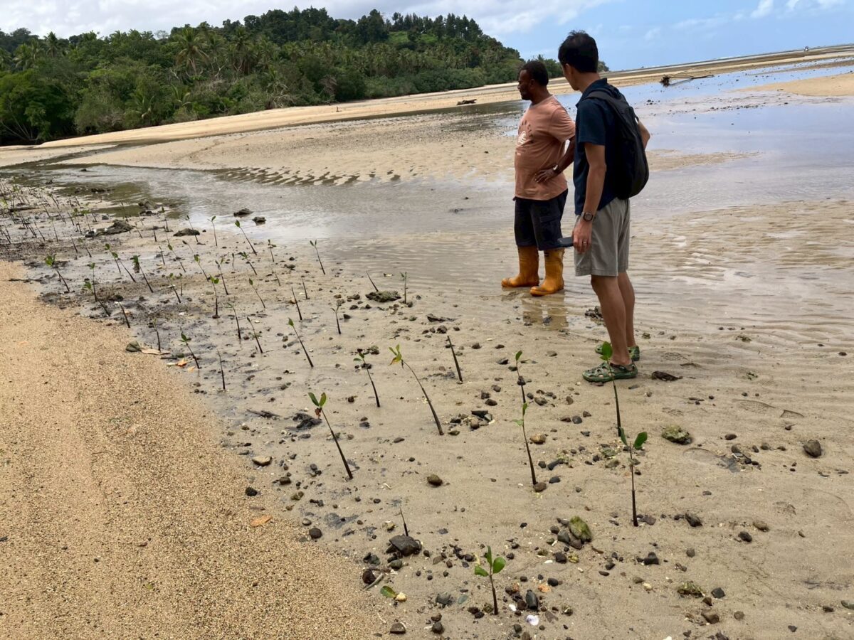どんどん進む海岸の浸食を少しでも食い止め、タガゲ村の人々の「ふるさと」を守るマングローブ林に育つように心から祈りました。