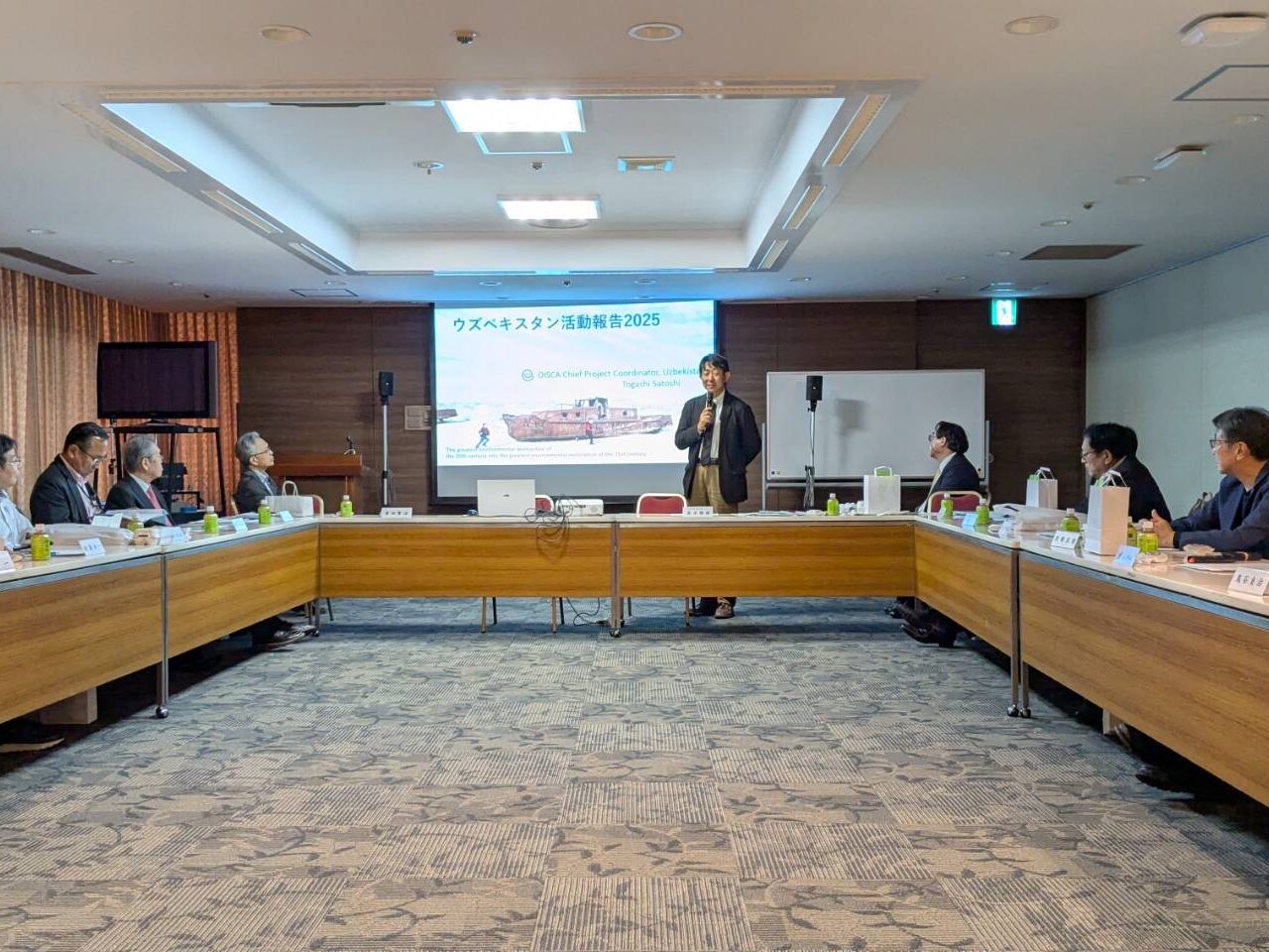 さらに今回の幹事会では、ウズベキスタンの沙漠化防止プロジェクトに取り組む冨樫智氏(オイスカカレッジ)をお招きし、現地での活動について講演いただきました。大変興味深い講和で、植林の必要性や環境課題と地域社会のつながりなど、じっくりと拝聴しました。