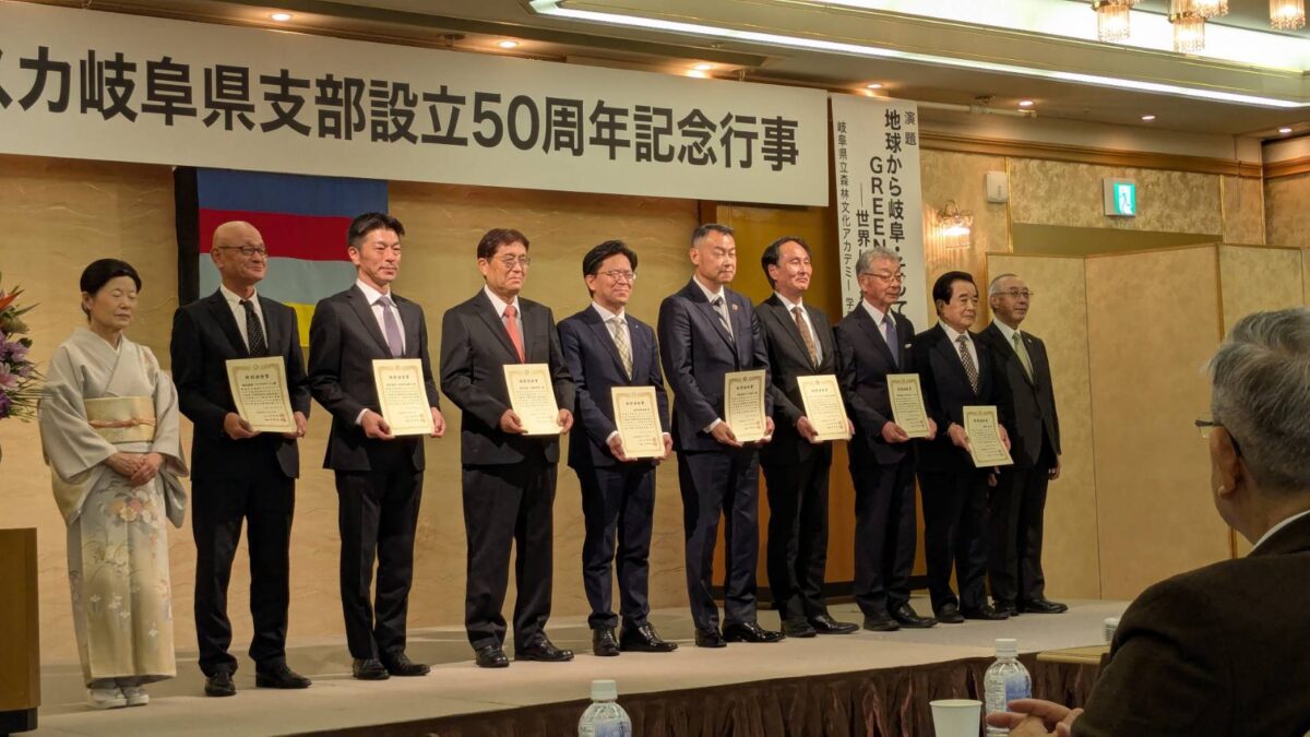 11月9日には、オイスカ岐阜県支部の設立50周年式典が開催され、静岡県支部からも内山隆司副会長と事務局2名が出席しました。