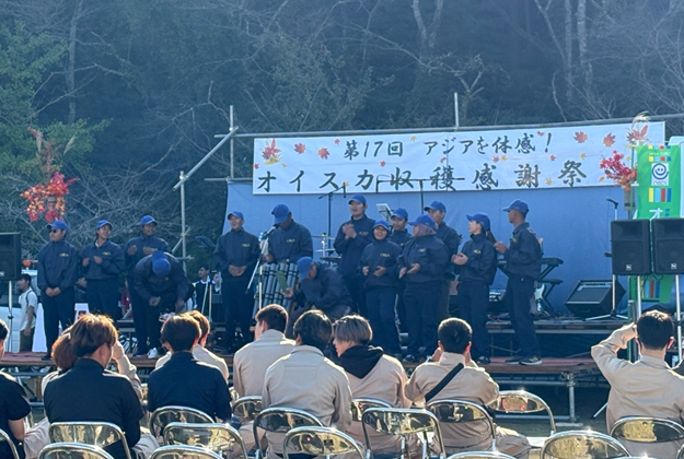 準備が整い、研修生による国旗掲揚やバンブーの披露で収穫祭がスタートしました!!