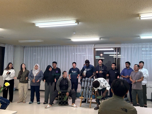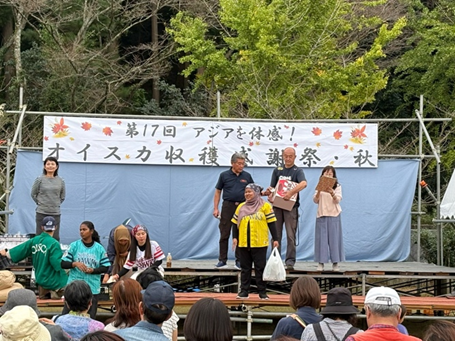 夜ご飯の際には、前日から手伝いに来てくださったボランティアの方や支援者の方と前夜祭を行いました。研修生のみんなが収穫祭で披露する、帰国後の目標発表やバンブー、ダンスなども見ることができ、本番への期待がさらに膨らむ1日となりました。