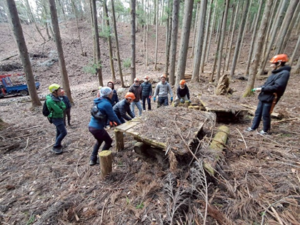 今回の活動では、林地に残された残材等の片付け作業を行いました。森の中に設置されていた看板や机・椅子などは、設置から年数が経過し老朽化が進んでいたため、今後の安全性や環境保全の観点から撤去作業を行いました。