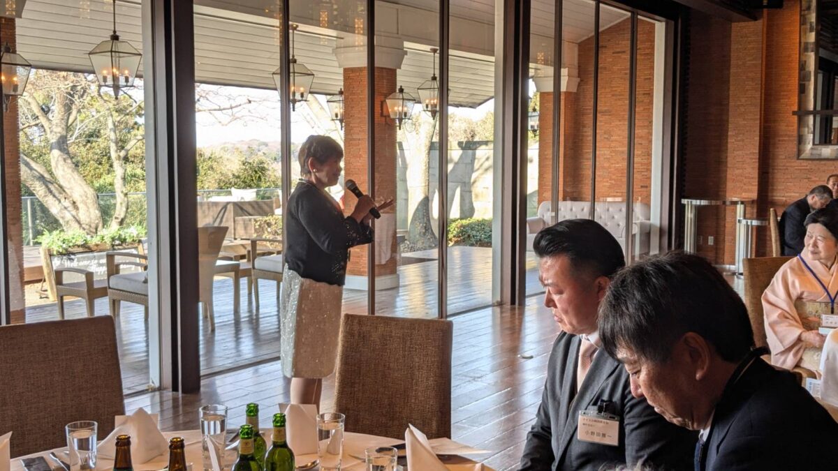 はじめに、浜松推進協議会の内山隆司会長が挨拶。続いて中野理事長から、初春にふさわしい気品ある着物姿で、新年のご挨拶をいただきました。