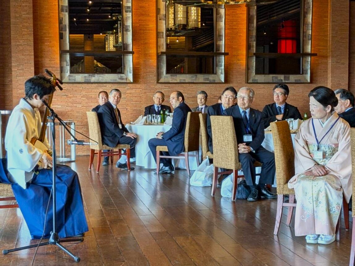 静岡県支部の落合偉州会長の挨拶の後、津軽三味線奏者の中村裕太氏(浜松出身)の演奏を楽しみ、会場のテラスで記念写真を撮影しました。