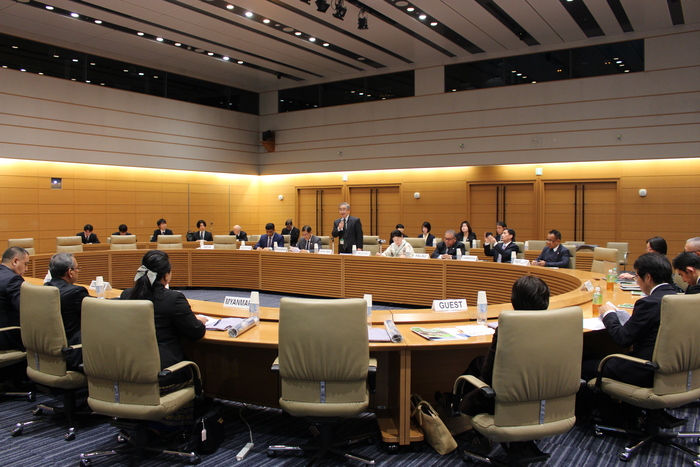 フォーラムが始まる前、会議室にいる大使館の代表同士が雑談や立ち話でお互い笑顔で話しておりフォーラム開始直後から緊迫した雰囲気は感じませんでした。計10か国の大使館の代表が集まるフォーラムなので、ウズベキスタンは日本語での発言がありましたが、共通言語は英語で母国語の発音が混ざり聞き取りづらいときもありました。 各国の代表が発言した後に、オイスカインターナショナルの永石副総裁が要点をまとめて話してくれたのでとても助かりました。