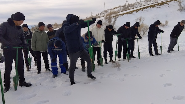 アラル海の入り口から60㎞ほど中に入ったところにオイスカが植林をしているサイトがあり、今回もそこで植林をする予定でした。
