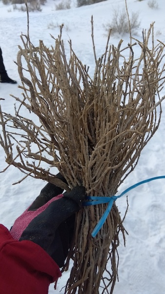 東南アジアや日本での植林の際は葉が青々とした苗木を植えますが、ここではただの枯れ枝のようにしか見えない、何とも頼りなさげな苗木を植えていきます。本当に育つのか心配です……。春になって青々と葉を茂らせた様子も見てみたいものです。