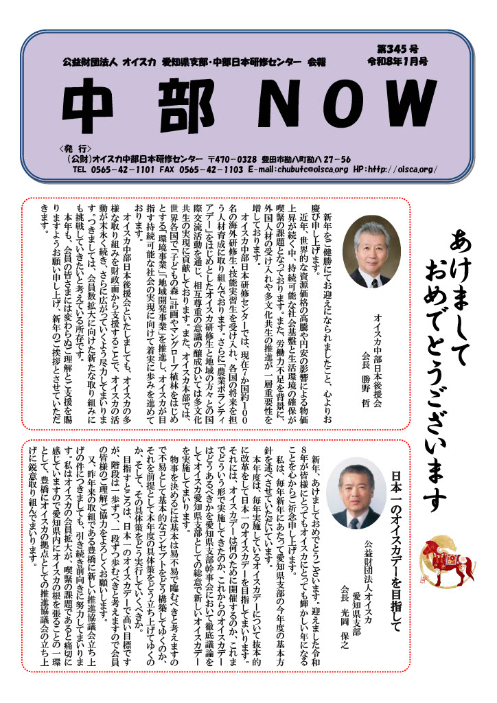 中部日本研修センター・愛知県支部がお届けする「中部NOW」では、行事のレポートやお知らせ、