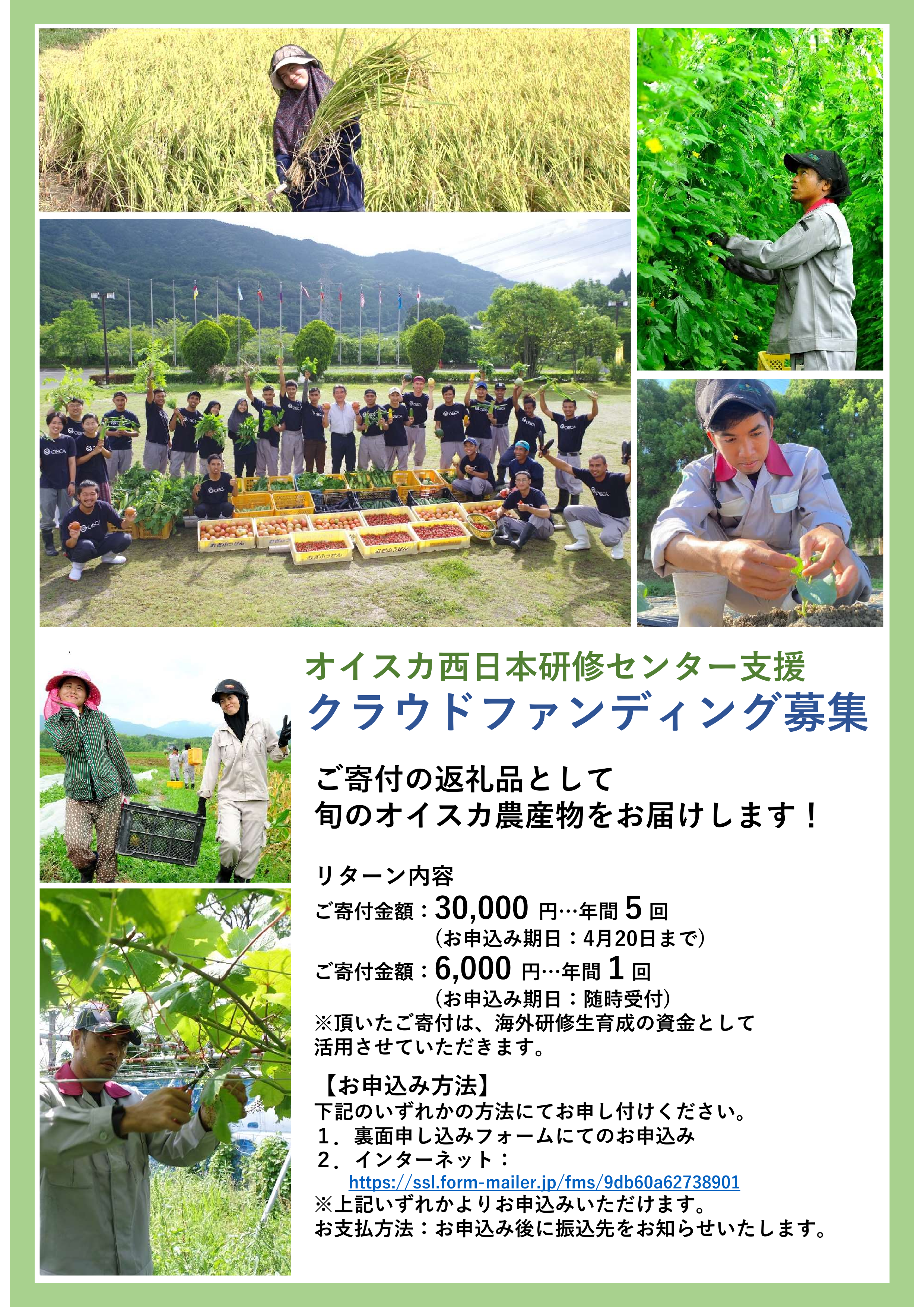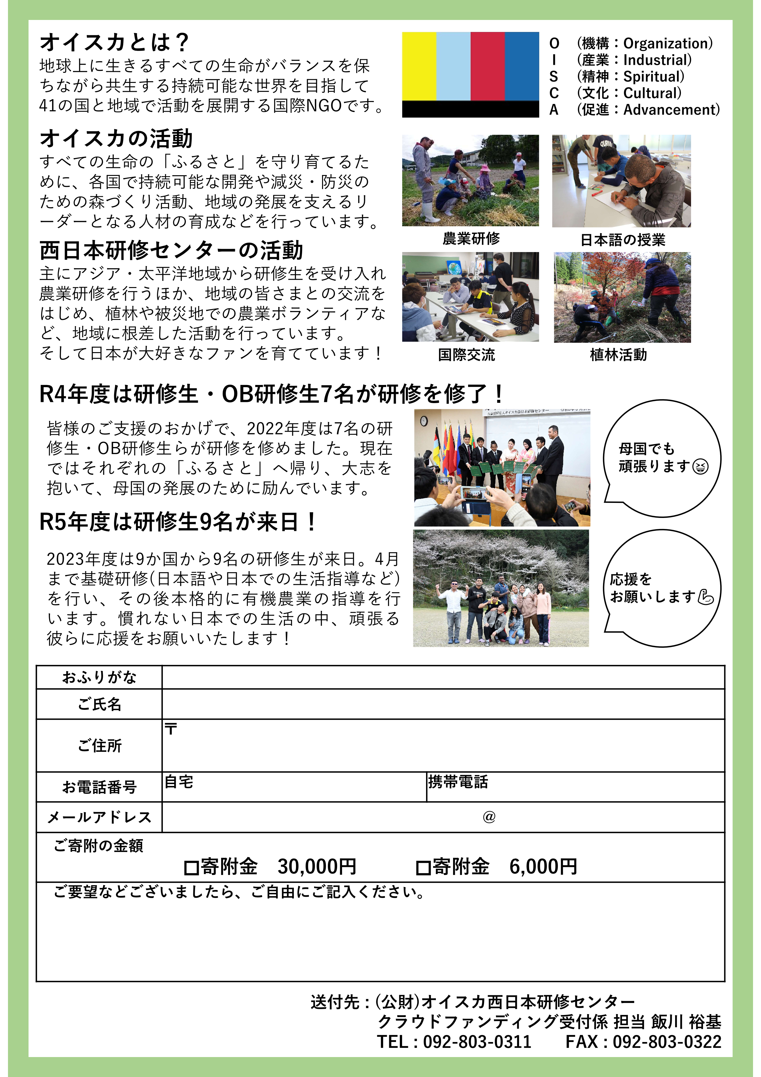 ※寄附金は西日本研修センターにおける海外研修生育成の資金として活用させていただきます。