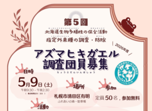 北海道生物多様性の保全活動 第5回アズマヒキガエル調査団員募集【募集中】