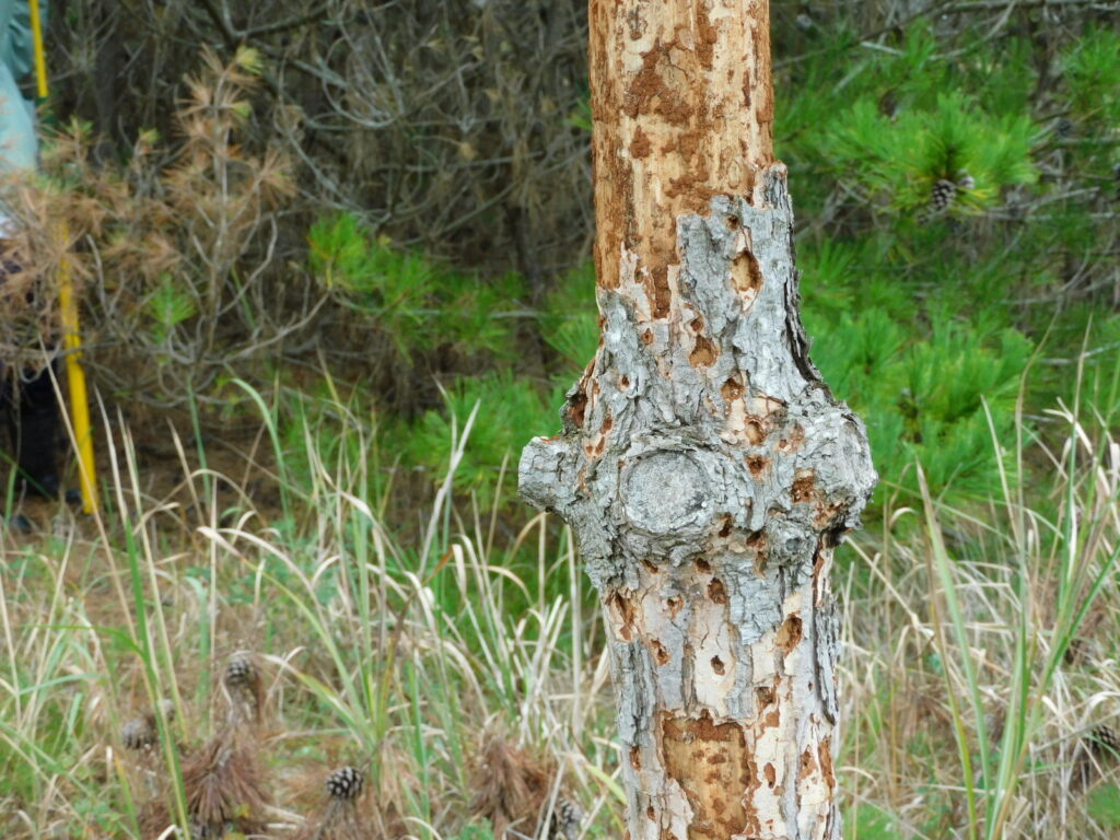 中村さんは、罹患が疑われる松を見つけると迷いなく森に入り込み、松にも登ってしまいました。まさに現場主義、課題解決型の専門家(談:吉田さん)。なおかつ、とても視野が広く、物腰も柔らかな方で、知識の足りていない私にも理解できるように分かりやすく丁寧に教えてくださいました。