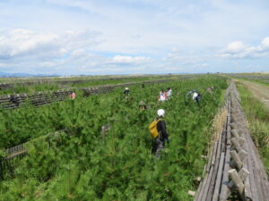 初めて参加してから6年経ちますがリピーターの参加者が極めて多いのが特徴です。(6年連続参加者もいます!)毎年クロマツの成長を楽しみにしている方が本当に多く、今年もどのくらい成長しているかが楽しみと言っている方が多かったです。実際見てみるとビックリ!最初に植えたクロマツが4メートル以上育っていた事に感動「ここまで成長すると、もう草刈りに入れないね。」と。。。いや、まだ入る所いっぱいあるし(笑)