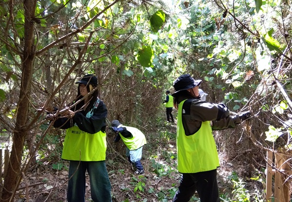 クズの繁茂地帯に行くには、バカの繁茂地帯を通らないといけない一団を「バカチーム」に任命。11月のモニタリングに向けてバカを刈ってもらいました。みなさん、ひどいチーム名ですみません……。