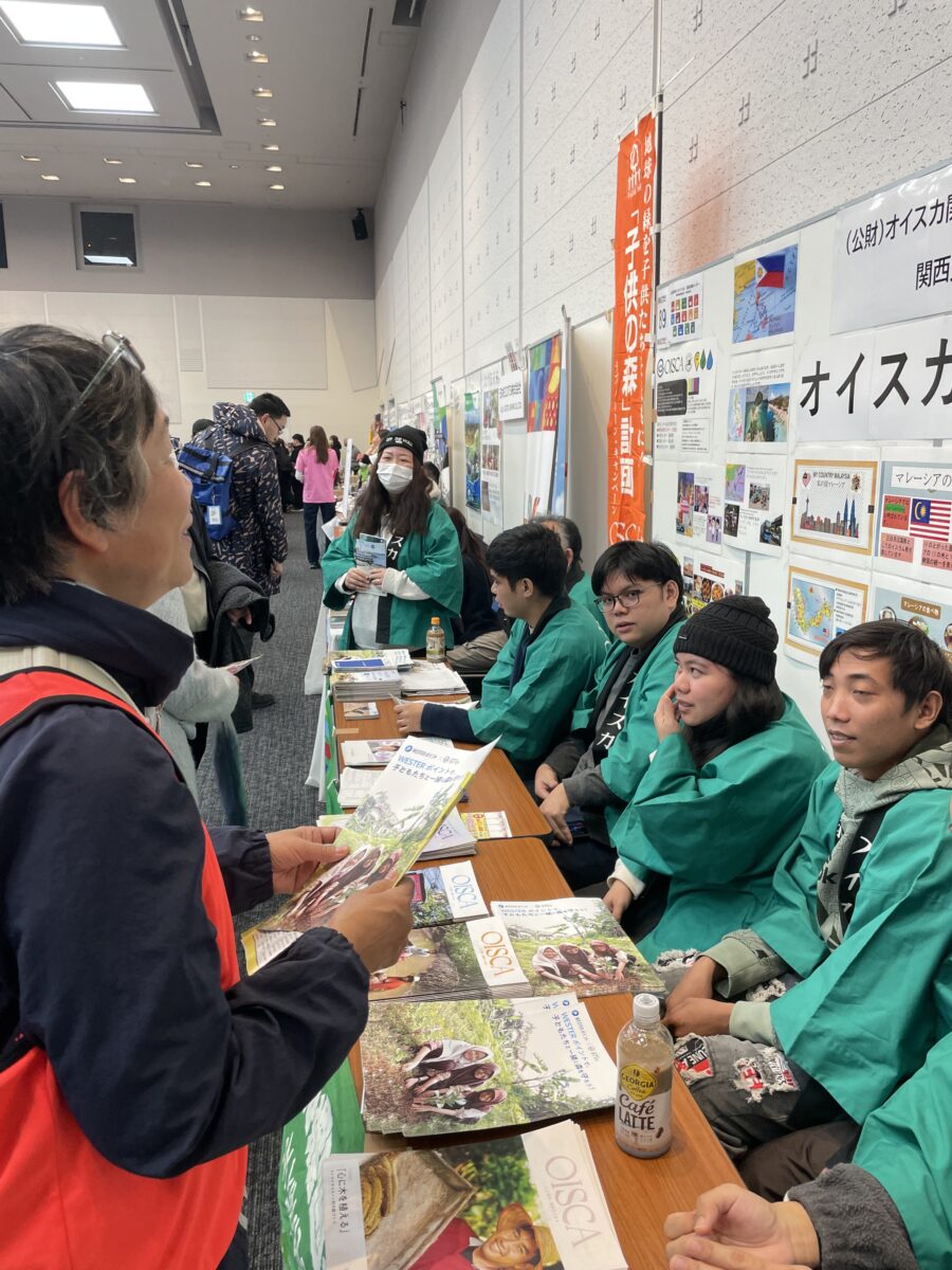 今年もオイスカ関西研修センター(豊能町)の技能実習生と職員が、日本語会話の実践トレーニングを兼ねて、西日本最大の国際交流行事として知られる「ワンワールド・フェスティバル」(梅田スカイビル)に出展し、母国の様子や来日した目的などを説明する機会としました。多くの来場者に恵まれて、用意したパンフレットが足らないぐらいでした。