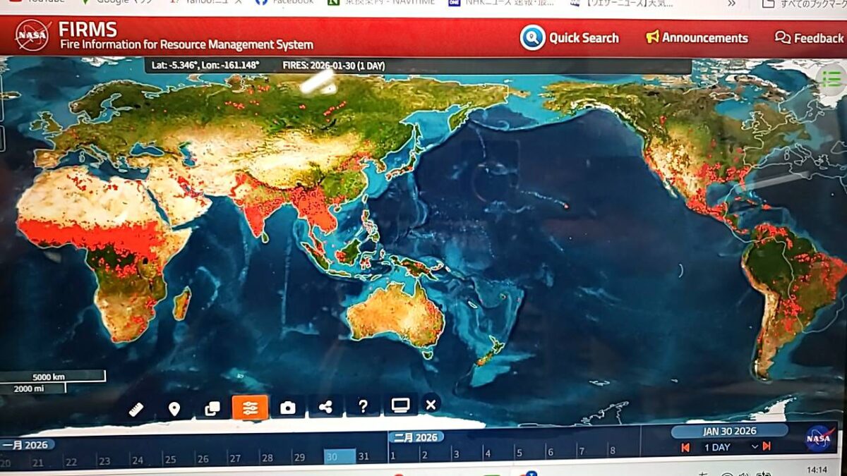 3月頃になると、この一帯は山火事マークで真っ赤になります。