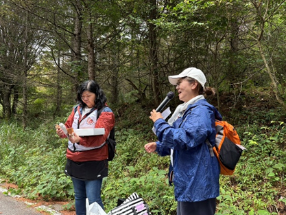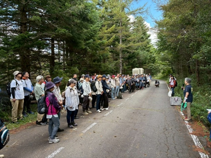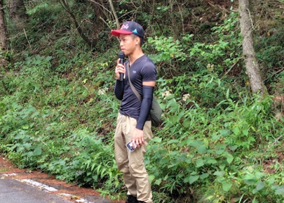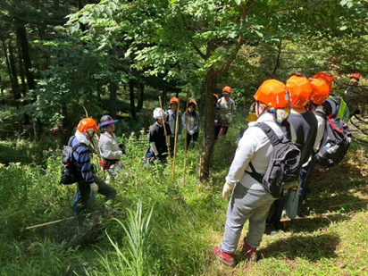 今回は活動地までの道のりが長く、到着する頃には早くもひと汗かくほど。それでも、山道を歩きながら自然の空気を感じるなど、参加者同士の会話も弾み、良い?ウォーミングアップとなりました。