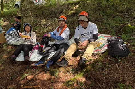 作業が終わったら、木の陰で班ごとにお弁当。山で食べると一段と美味しいですね!!