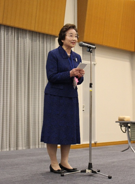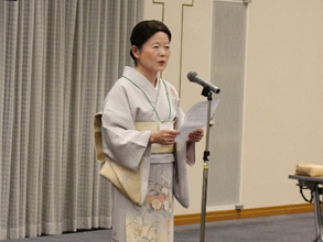 式典では、長年にわたり支援を続けてきた永年会員への感謝が表明され、50年表彰(特別功労賞)2社、40年表彰(功労賞)5社、30年表彰1社に感謝状と副賞として西日本研修センターの新米が贈られました。受賞者を代表して丸千千代田水産株式会社の石橋利至子会長が挨拶し、これまでのオイスカとのつながりと今後への期待を語っていただきました。