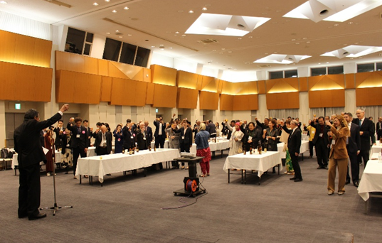 続く懇親会では、首都圏支部の湧井敏雄会長の乾杯を皮切りに、和やかな交流の時間がスタート。各国の理事や日本の会員たちは企業活動やオイスカへの思いを語り合い、互いの理解を深めました。締めくくりは株式会社アドワークスの屋並和雄会長が務め、初開催の「つどい」は温かい拍手の中で幕を閉じました。