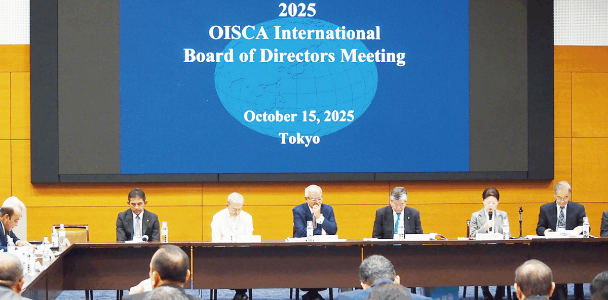 2025年10月15日、国立オリンピック記念青少年総合センターで、オイスカ・インターナショナルの国際理事会が開催され、13の国・地域から72名が参加しました。オイスカ・インターナショナルの中野悦子総裁は、冒頭の挨拶で「変化の著しい世界においても、オイスカファミリーの心を一つにし、互いに協力し合うことが大切」と話し、「創立当初に掲げられた理念『地球上のあらゆる生命の基盤を守り、人々がさまざまな違いを乗り越えて共存し、自然と調和して生きる世界』の実現に向けて、一歩ずつ前進していこう」と呼びかけました。