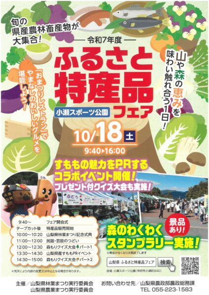 【出展のお知らせ】<10/18(土)・甲府市>ふるさと特産品フェアに参加します