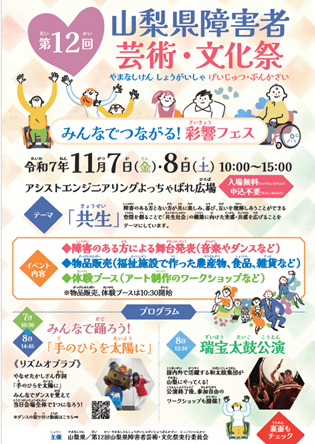 【出展のお知らせ】<11/7(金),8(土)・甲府市>山梨県障害者芸術・文化祭に参加します!