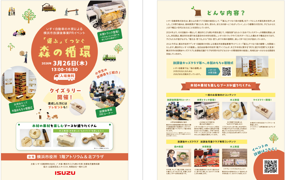 オイスカと森づくりや木育などで協働しているいすゞ自動車株式会社様が横浜市と共催でイベントを開催します。